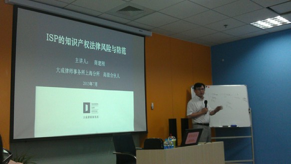 2013年7月24日上午,2345邀請中國規模最大的合伙制律師事務所之一——大成律師事務所的高級合伙人商建剛律師,為2345員工開展“ISP的知識產權法律風險與防范”的法律專業知識培訓講座。