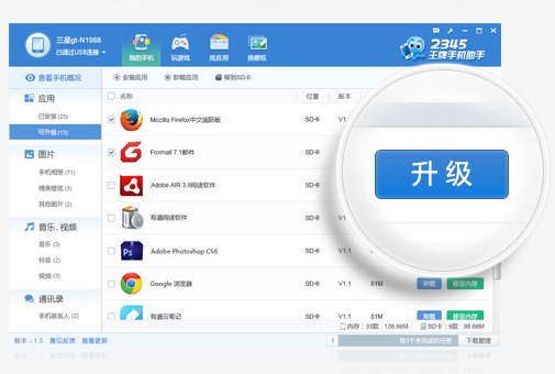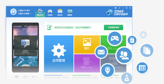 2345王牌手機助手,通過USB輕松將你的手機連接到電腦,軟件傳輸更快捷。