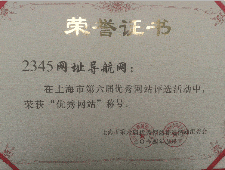 6月16日,上海市第六屆優秀網站評選活動表彰會在上海圖書館4樓多功能廳召開。2345網址導航榮獲“優秀網站”的稱號。