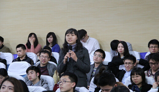 宣講會現場,同學們積極踴躍地向兩位創始人提出了關于公司平臺、產品、未來發展和招聘崗位等方面的問題。對于公司未來的發展,韓猛先生表示:“在互聯網這個發展變化迅速的行業里,公司實行扁平化管理,盡可能提高效率以便快速反應市場。我們不求一下子的趕超,而是追求不斷做深做廣產品線,每天贏一點點。這是一場馬拉松。”為了更好回答關于公司產品方面的問題,公司各產品事業部中心總監也去到了現場,給予同學們專業的解答。