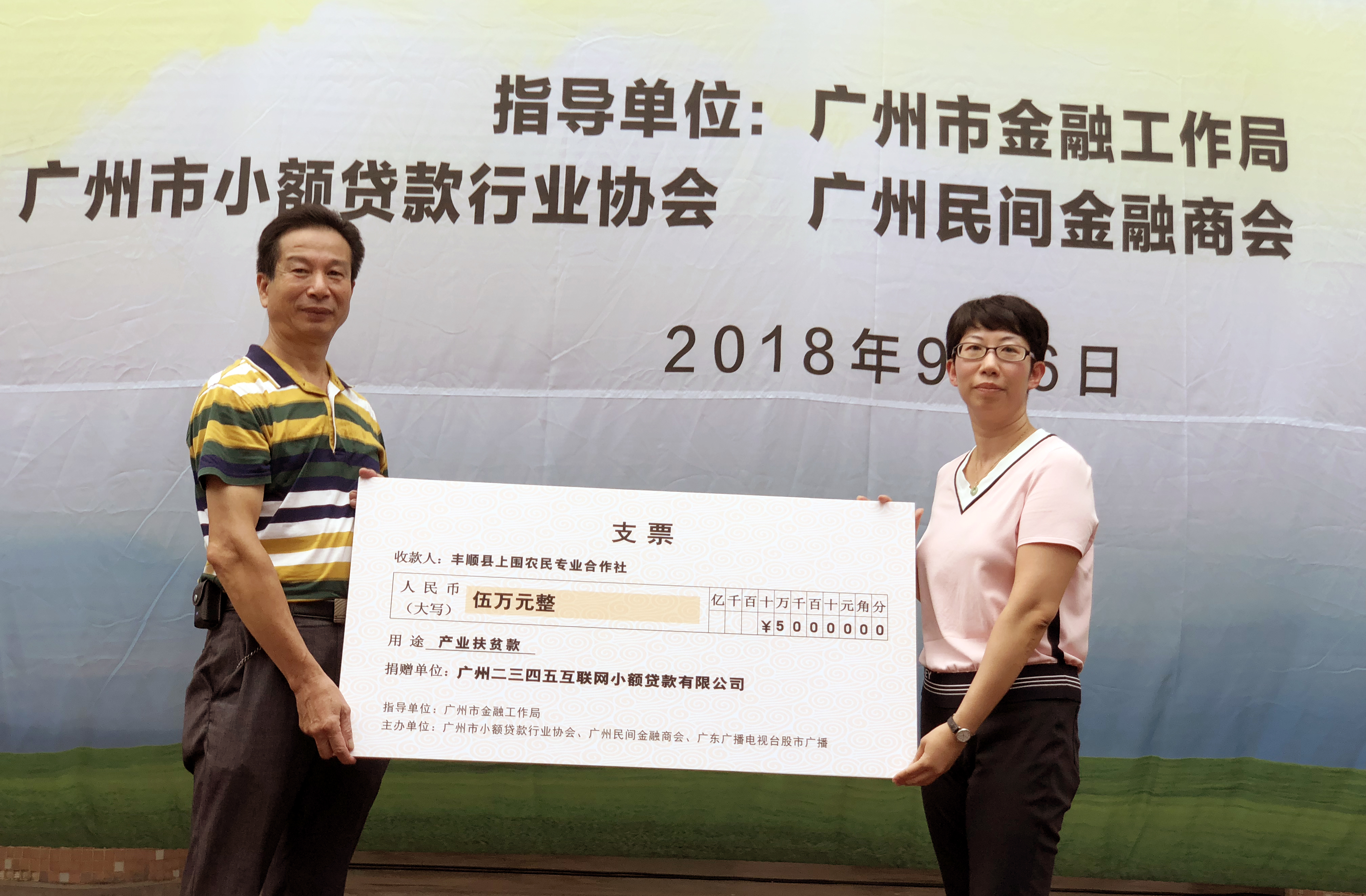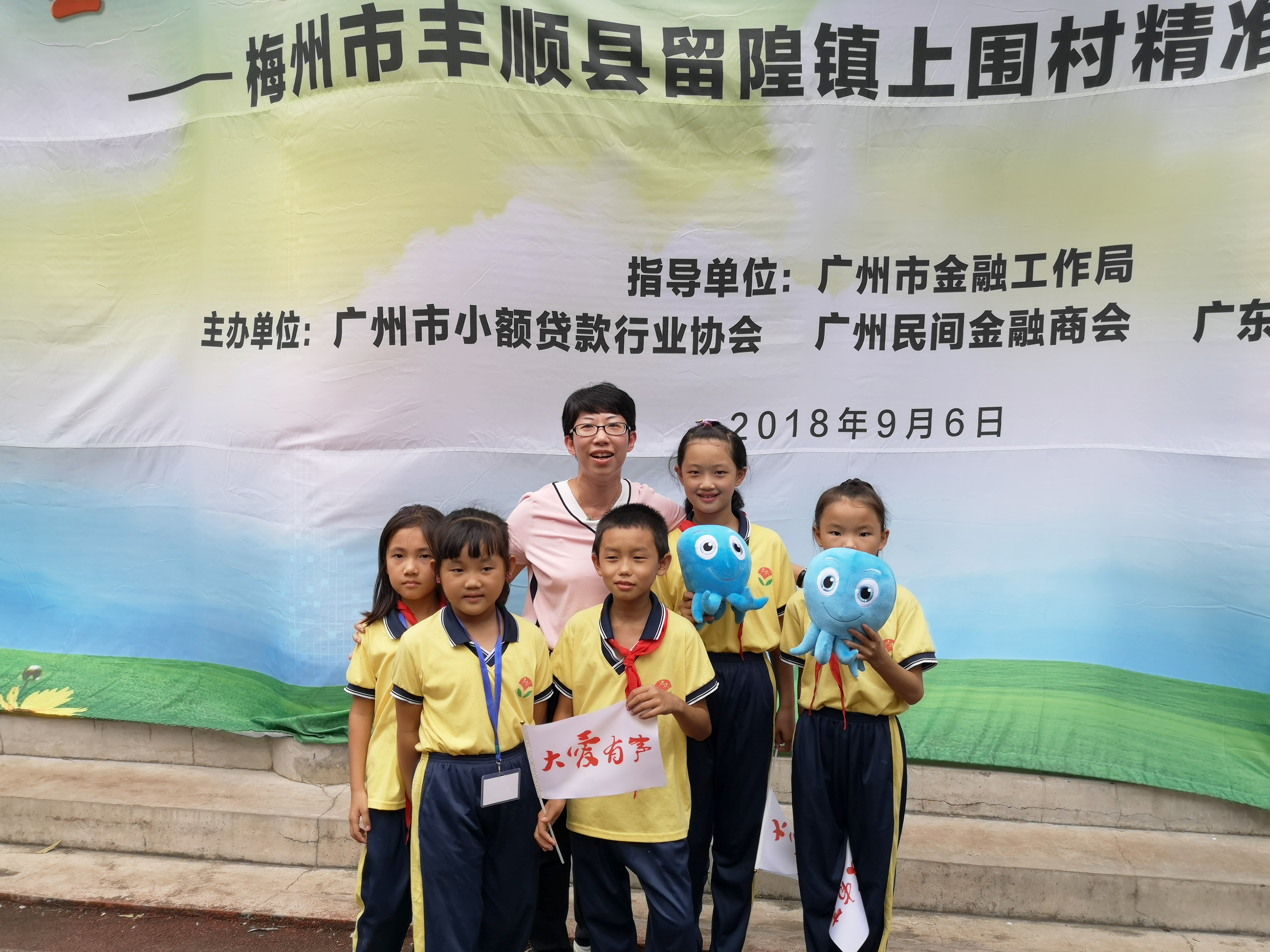 “金融精準扶貧,助力鄉村振興”,9月6日,梅州市豐順縣留隍鎮上圍村精準扶貧捐贈活動在上圍村慈君小學舉行,二三四五旗下孫公司——廣州二三四五互聯網小額貸款有限公司參加本次活動并捐款5萬元,為本次活動捐款金額最多單位。