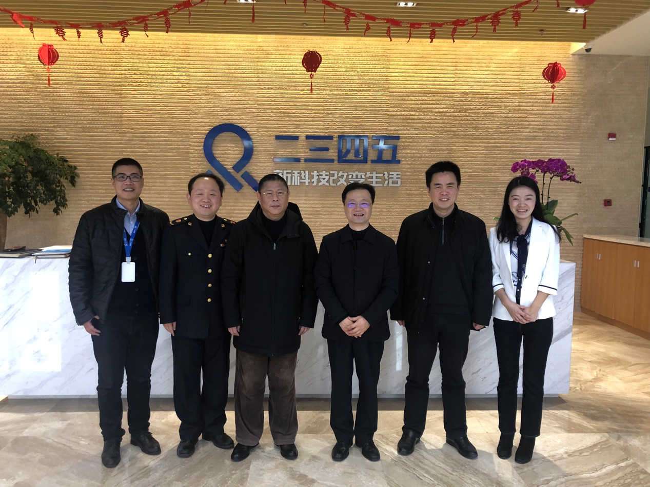 2月11日上午,浦東市場監管局副局長、綜合執法稽查支隊支隊長蘇國平,浦東市場監管局市場處(網監處)處長于順良一行蒞臨二三四五總部視察工作。二三四五集團副總裁羅繪陪同領導參觀公司并開展座談會。