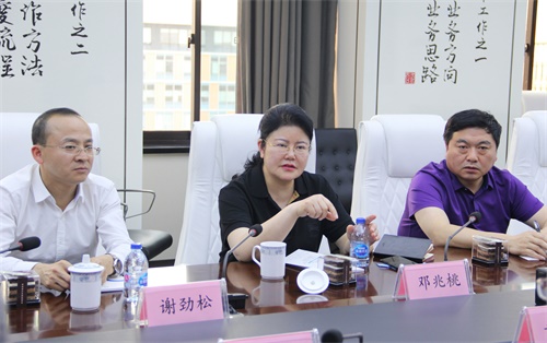 黃國敏向代表團一行介紹了二三四五的發展歷程、核心業務、企業文化、獎項榮譽等情況。鄧兆桃書記對二三四五的發展成果表示了肯定,并對二三四五的企業文化頗為贊賞。