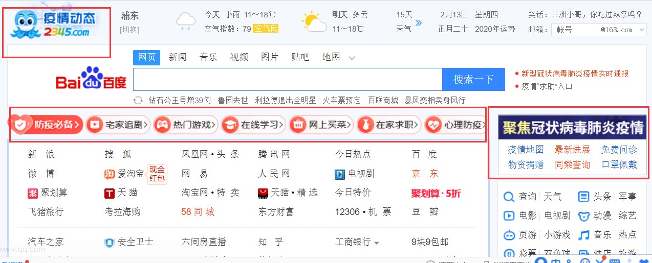 打開2345.com網址導航可以看見,其官網首頁右側上方上線“聚焦冠狀病毒肺炎疫情”專區,包含疫情地圖、最新進展、免費問診、物資捐贈、同乘查詢等功能;左側上方也聚合了“疫情動態”大數據播報;而 “網上買菜”、“疫情求助”“疫情辟謠”等關乎民生的重要功能也呈現于顯著位置。點擊“網上買菜”,直接進入了天貓的愛心助農專線,公開信息顯示,該專線是為了幫助滯銷農產品打開銷路所設。