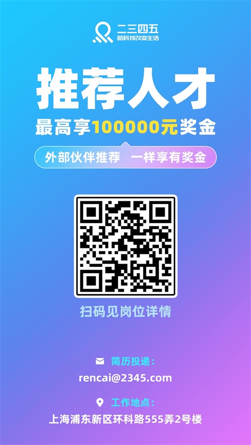 作為大平臺,2345不但是用戶值得信賴的選擇,更是各位人才工作的好選擇!